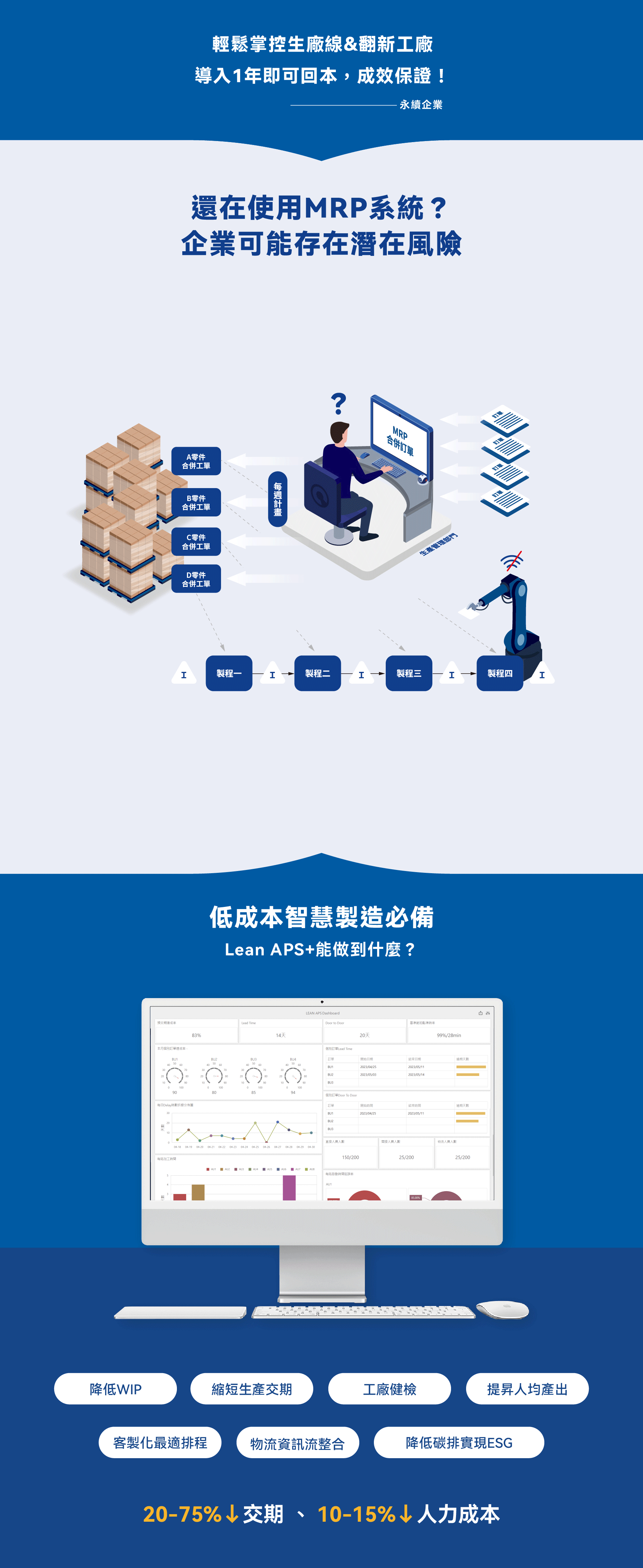 整合1世紀以來全球精實知識,針對台灣企業進行在地化改善,使用多種看板、拉動、庫存因應不同企業生態。快速降低成本,以看板串連資訊流、物流、庫存,平衡人力與機械化,推進低成本自動化生產。